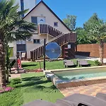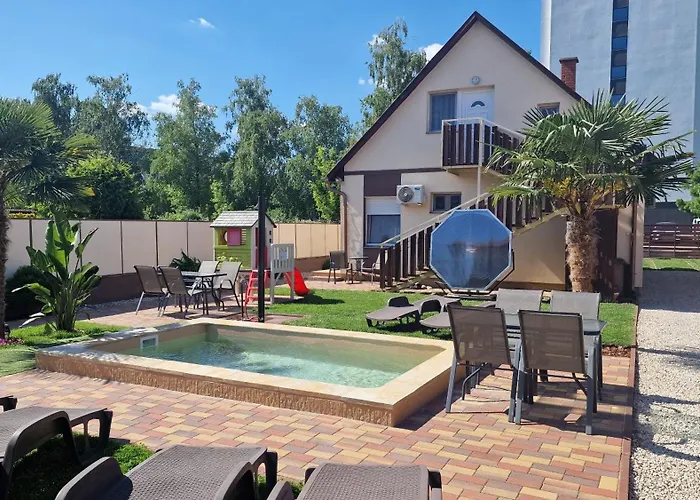 Featuring an outdoor pool area and a sunbathing terrace, Napsugar Villa "A" is situated in the Siofok Aranypart district, 3.1 km from Bella Stables and Animal Park SIOFOK. Nearly a 25-minute stroll from the apartment you will find The benevolent angel of peace Sculpture.